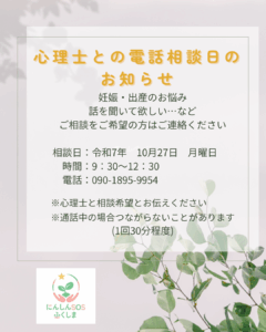 ※SOS相談と同じ番号になりますので「心理士と相談希望」とお伝えください。