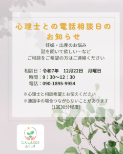 ※SOS相談と同じ番号になりますので「心理士と相談希望」とお伝えください。